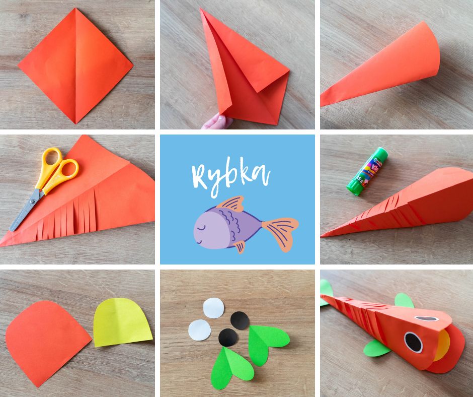 Szablon rybki wykonujemy z kwadratowej kartki zgodnie z poniższymi zdjęciami.